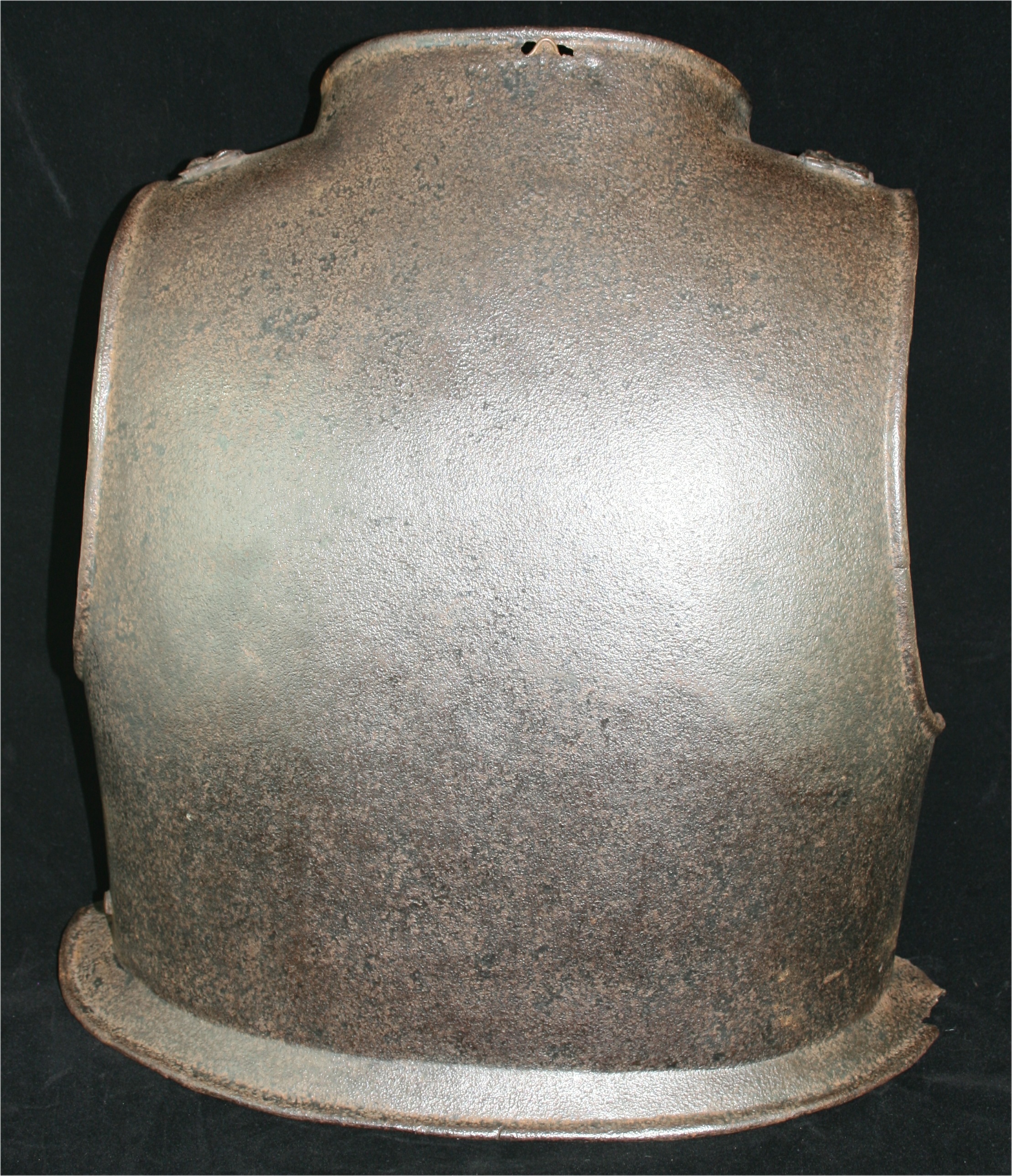 One piece with integral collar. Flare at the waist. Rolls at the neck, arms and waist. Remains of stamps near the neck.