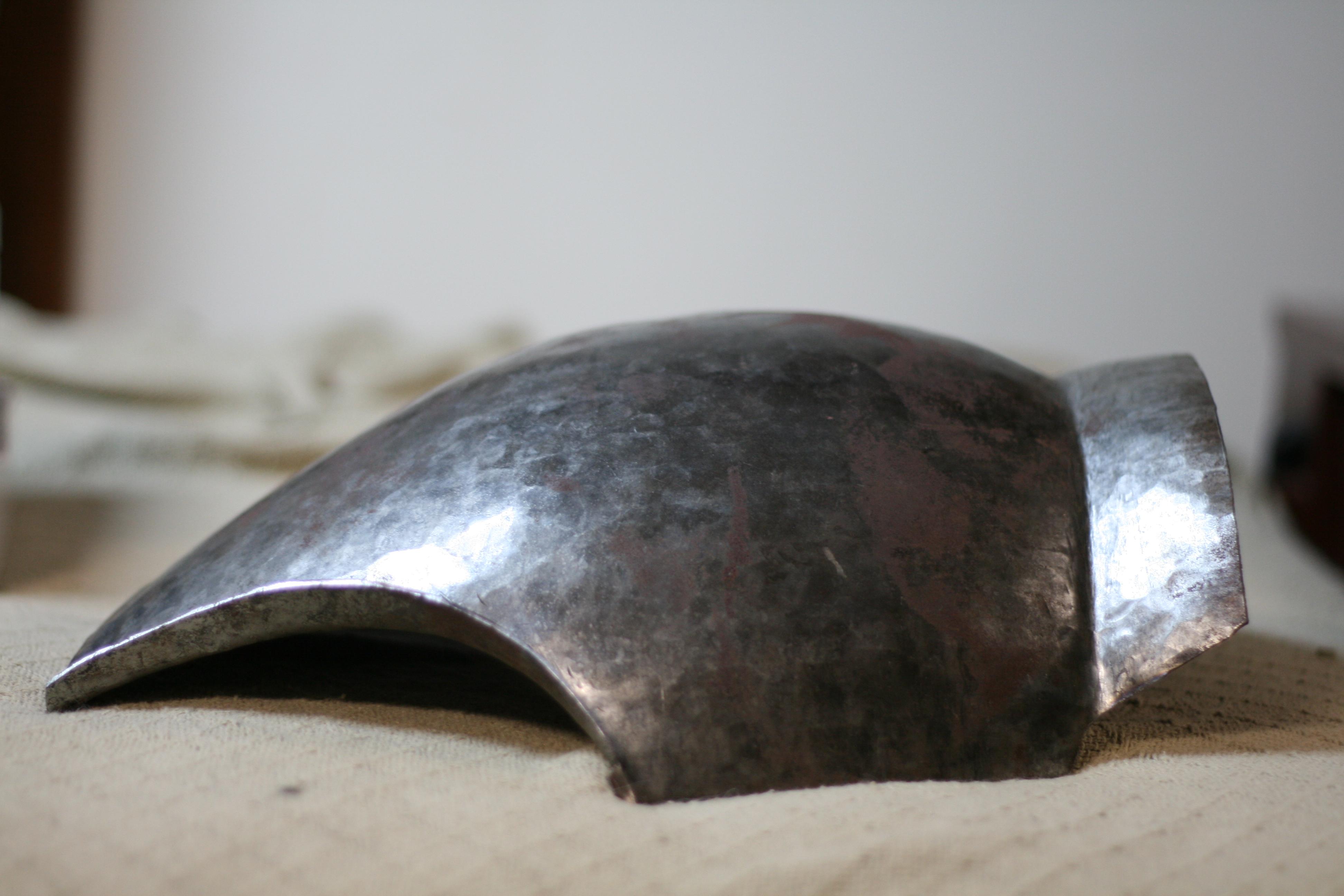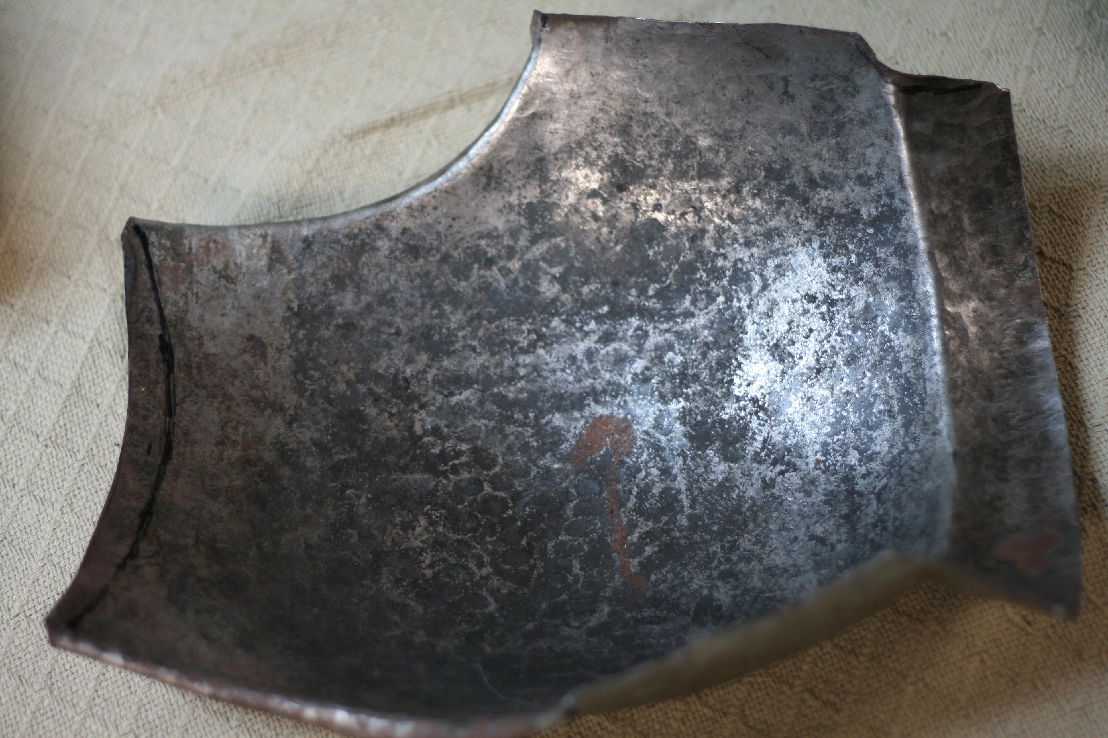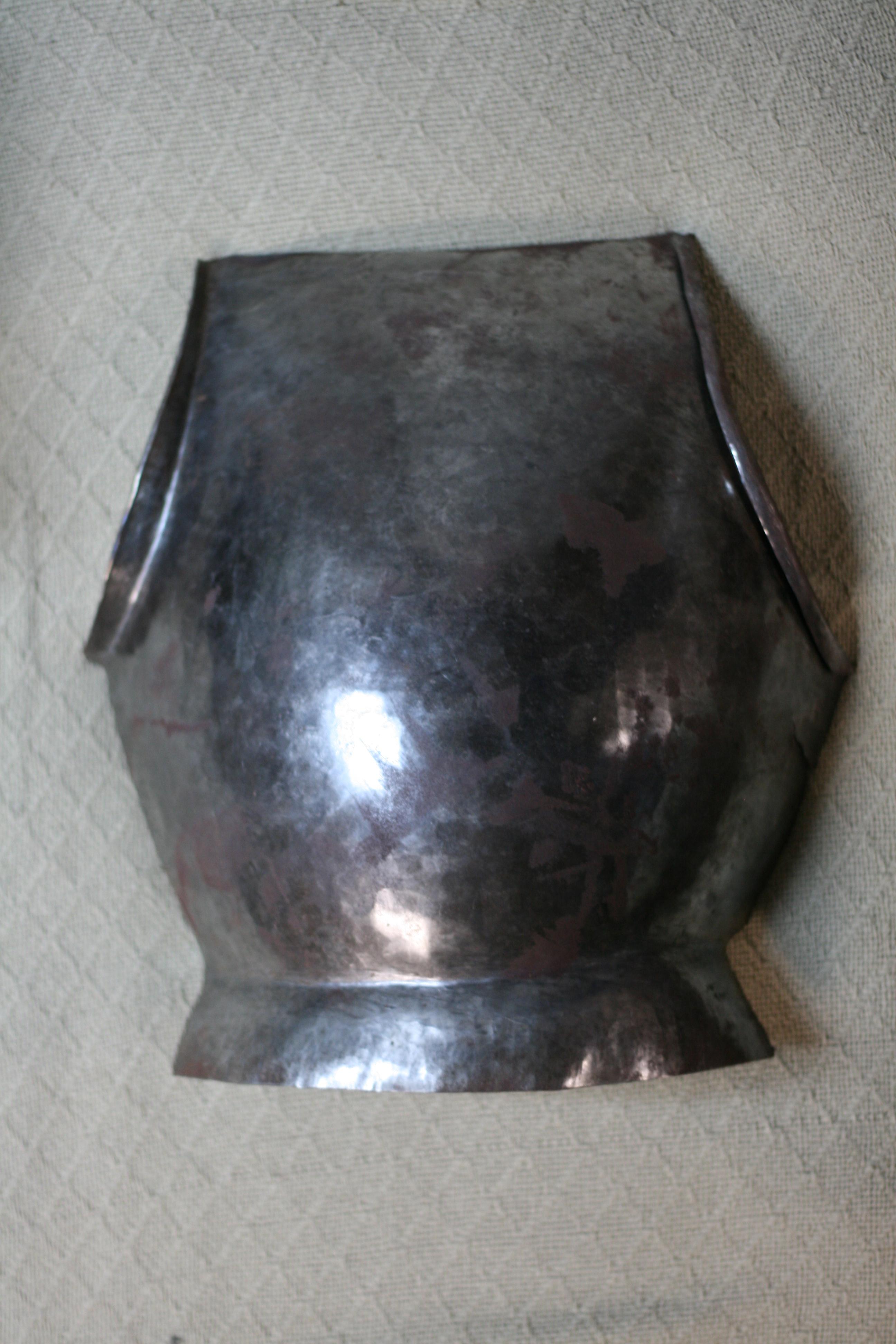 These are some initial images of a preliminary experiment into making a breastplate using a power hammer, drawing out, and dishing only.