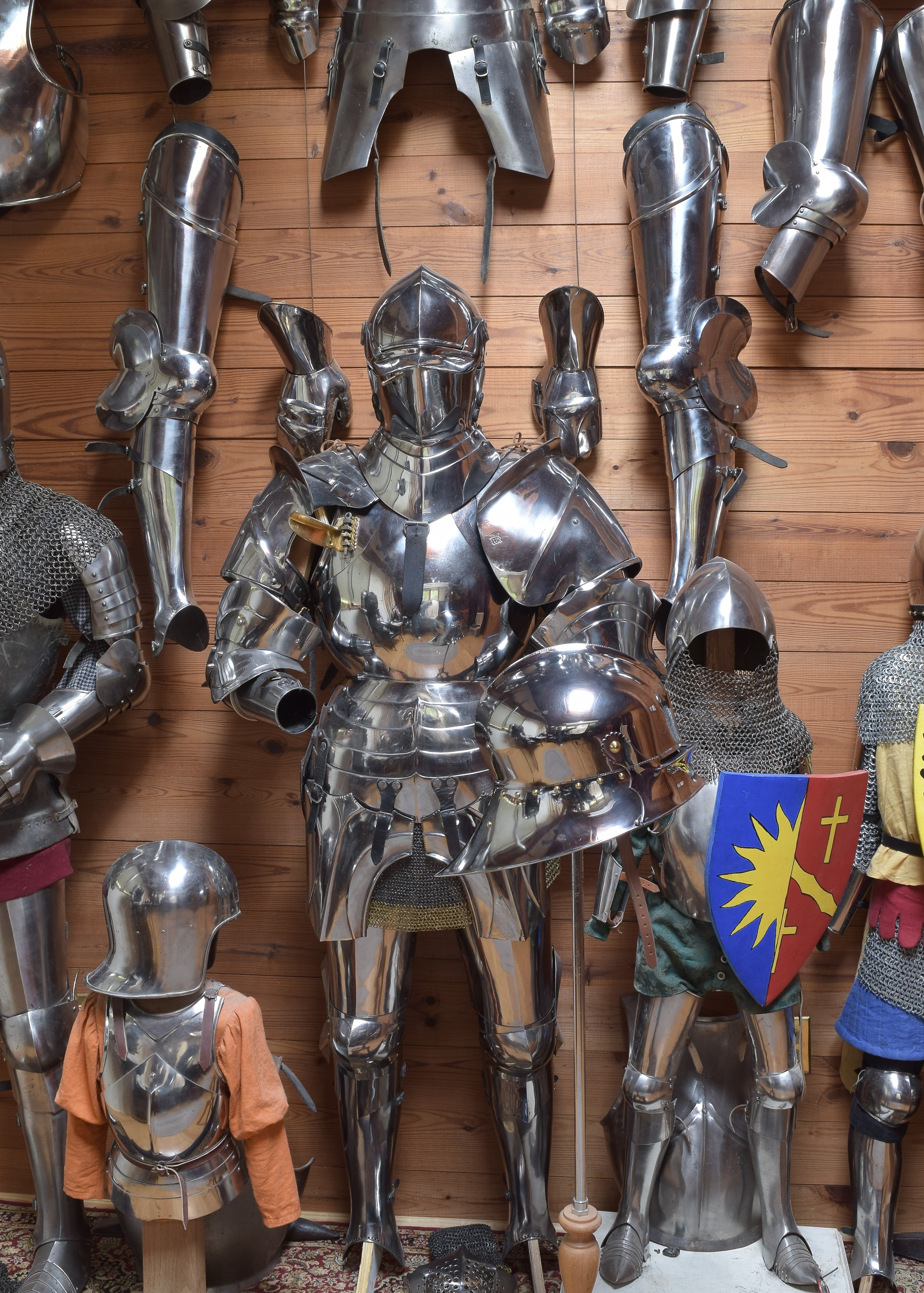 Expertly designed and built by Francois L'Archeveque. Based on A-62 KHM and similar helmets, but not intended as a direct copy. Somewhat simplified with a roll at the lower edge instead of applied copper alloy border. Complete with fine engraved decoration, interior visor reinforce and elegant double heart piercing at the center of the crest. Made by the modern armourer with a really great eye for salades. Formed of mild steel with an intentional thickness change between the top and the sides and back mimicing the construction of the high quality helmets of the time. The general concept was agreed to with Francois, but Francois was allowed to choose the details of the form to make the prettiest salade of this type he could.