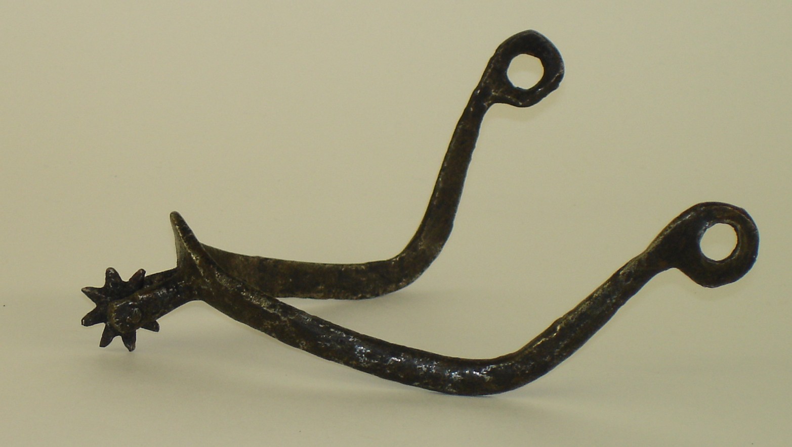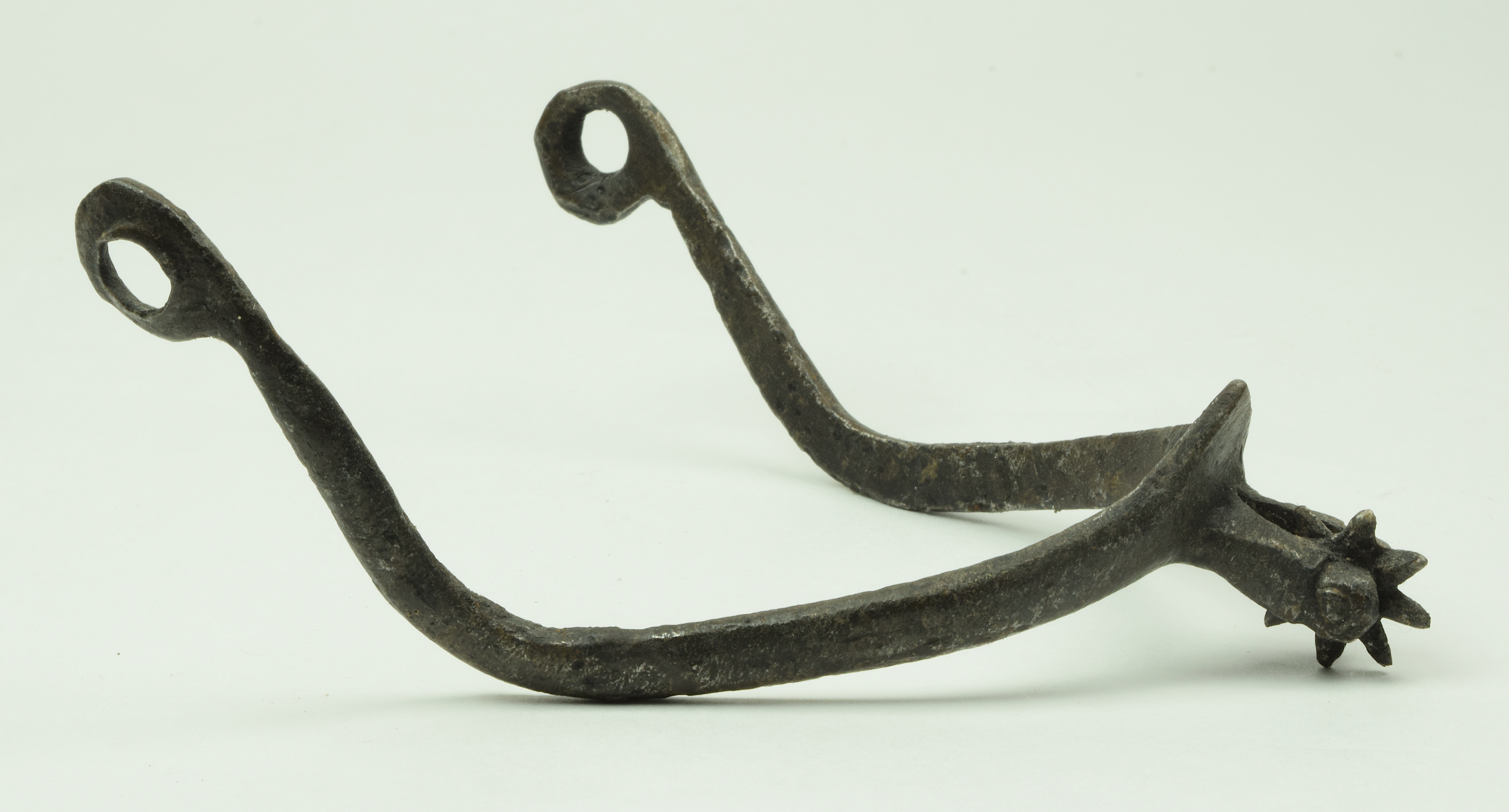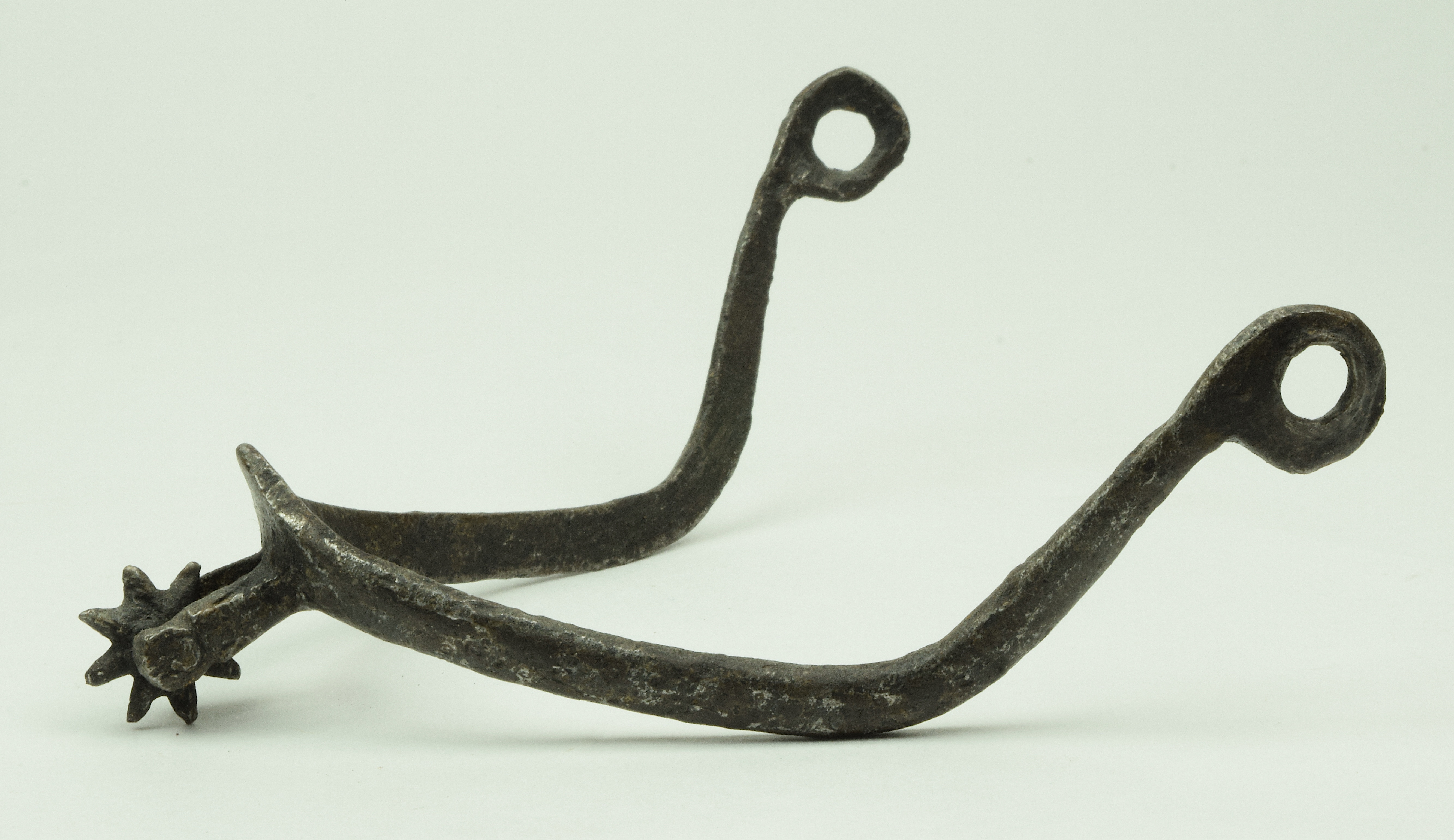 Spur. Curved arms. Small rowel. Single loop terminal on each side. Excavated in Germany. Cleaned.