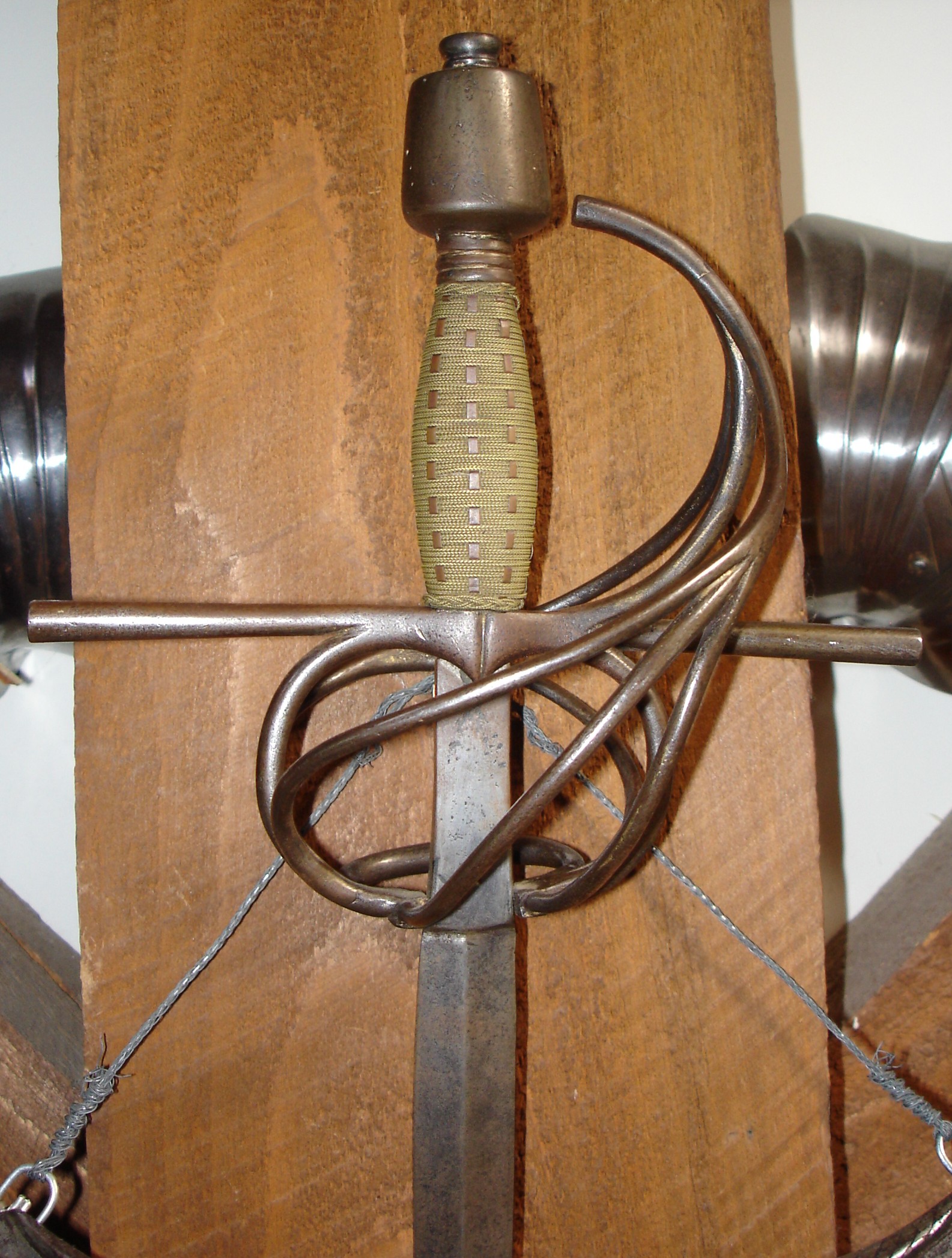 Rapier. Swept hilt. Long blade of diamond section. Tapered pommel. Wire wrap replaced.